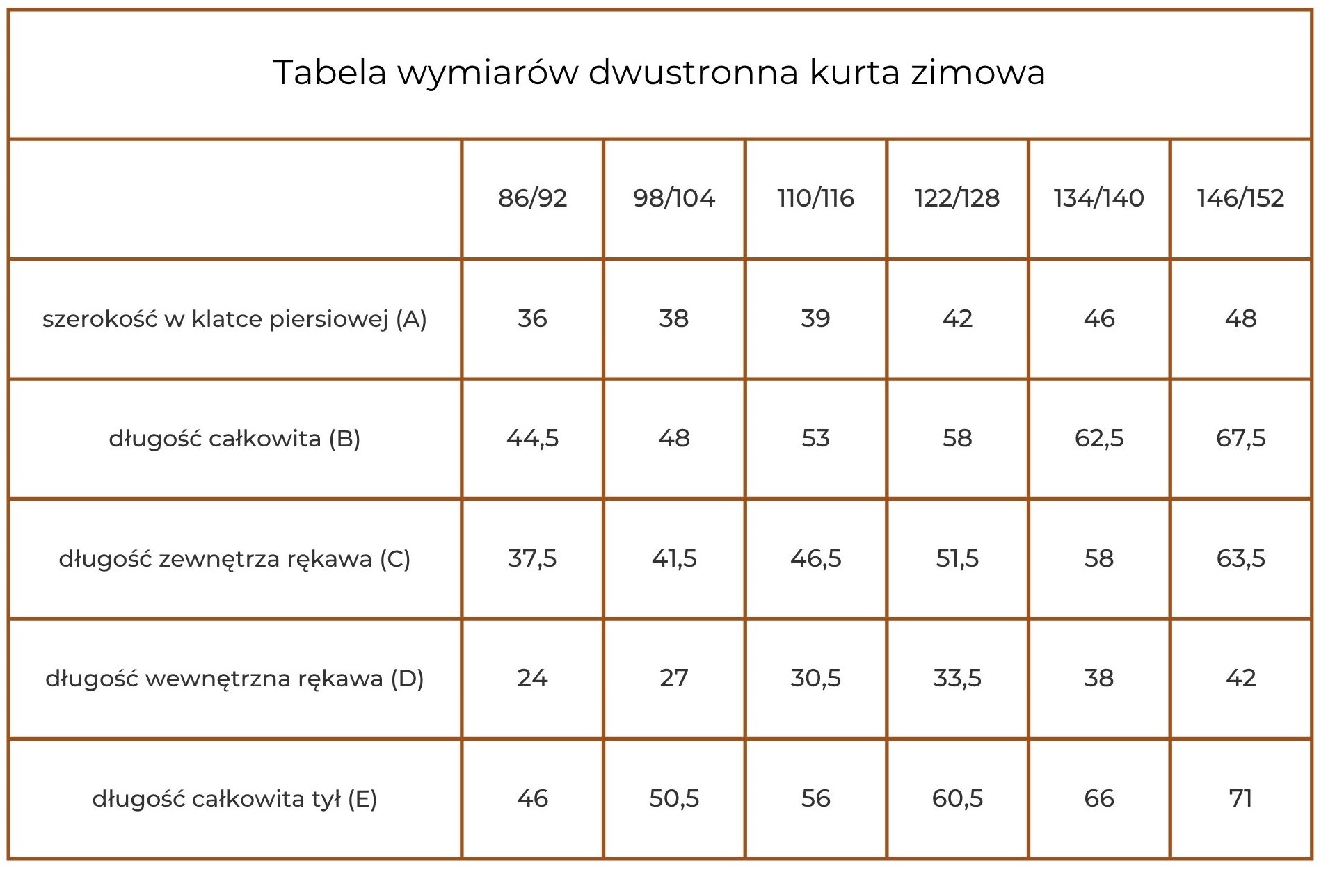 Kurtki zimowe mogą różnić się wymiarem o +/- 2cm ze względu na ręczne szycie materiału.